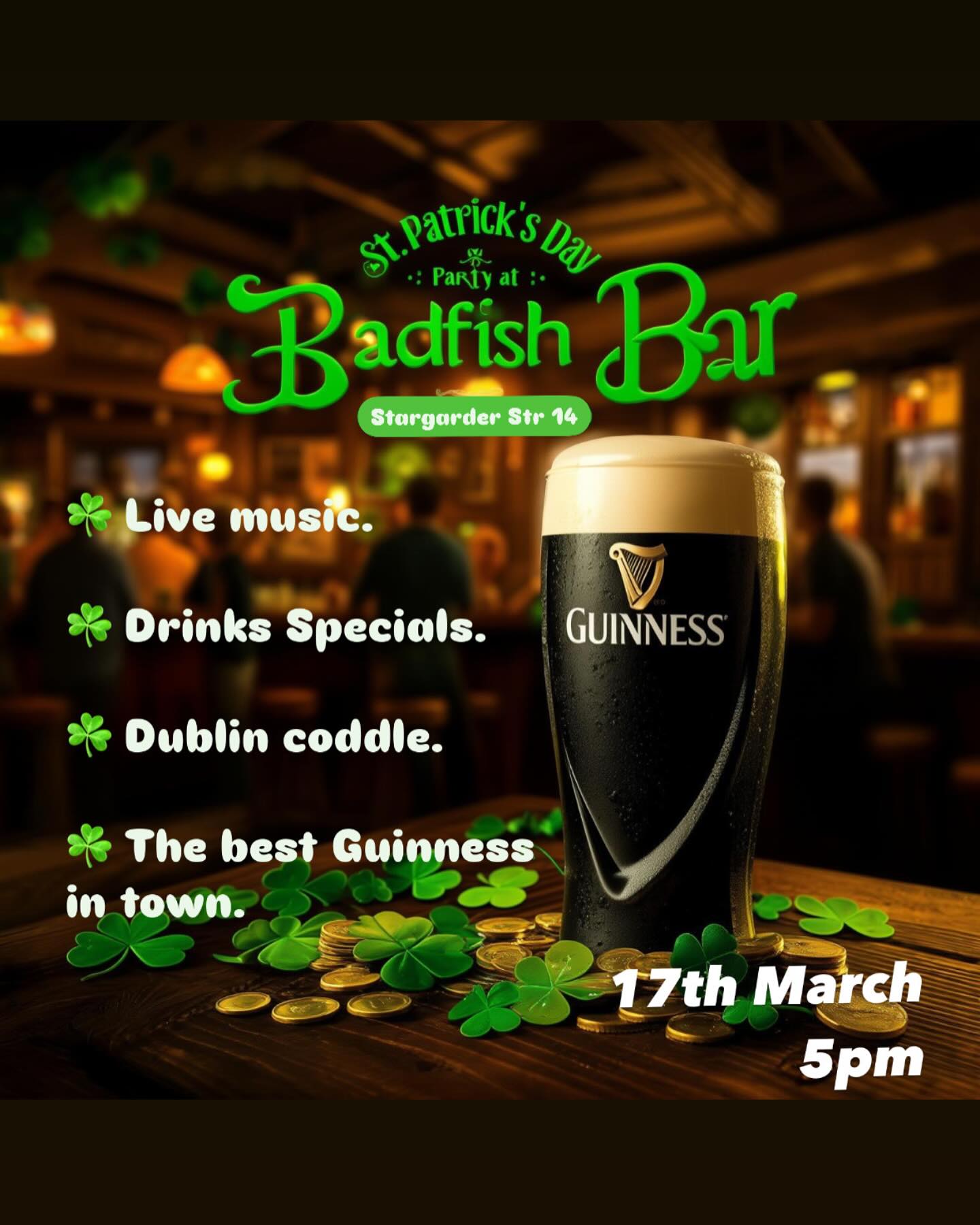 Although not an Irish pub in the traditional sense, the Badfish Bar is once again throwing a proper Paddy’s Day bash this year: with Guinness, live music, and warming Irish coddle for the stomach.